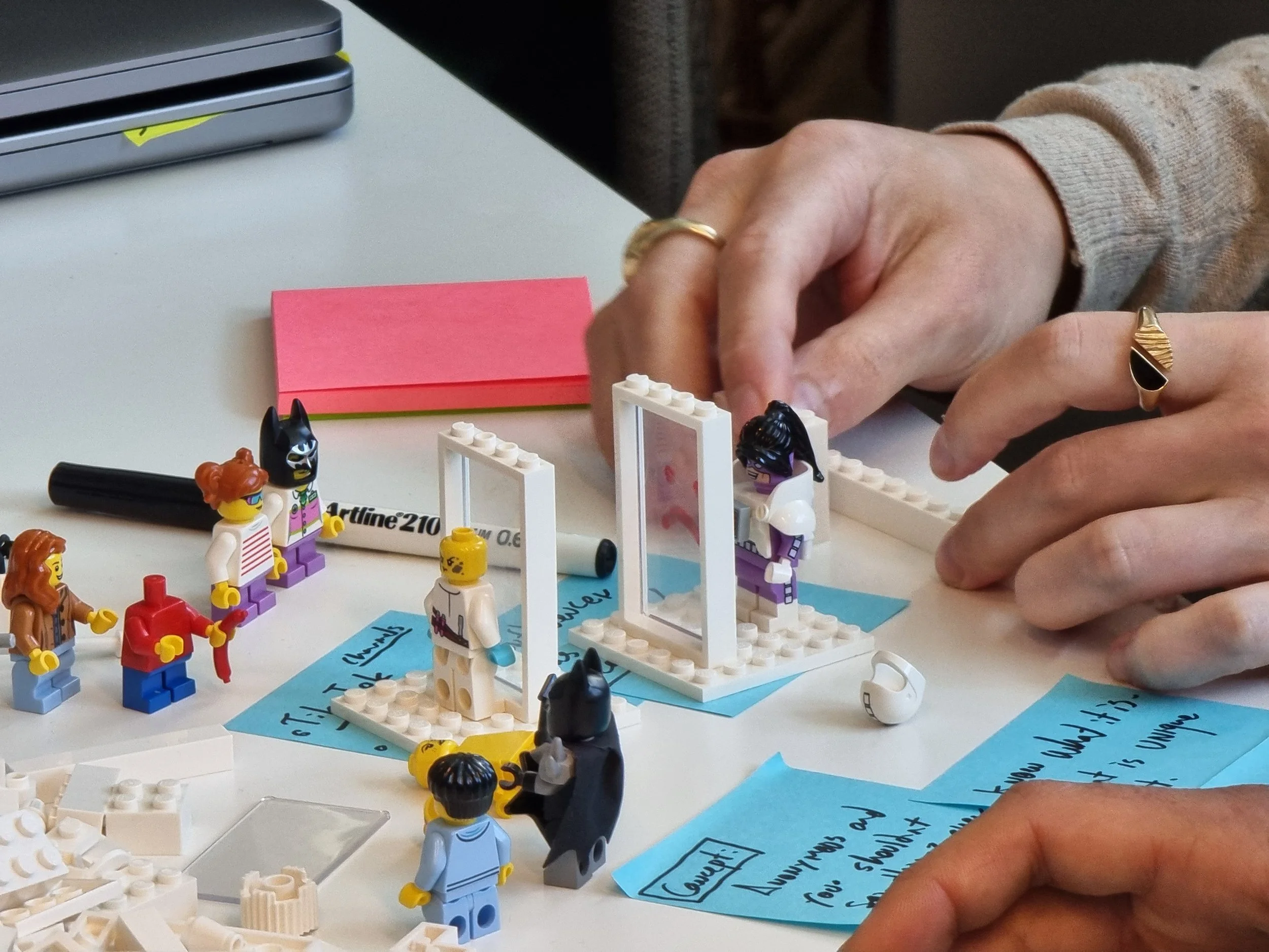 A co-creative workshop helped explore how topics like cyberbullying and screen time could be told through story and play, using LEGO bricks to prototype narratives. These insights shaped the structure, tone, and characters of the packs.